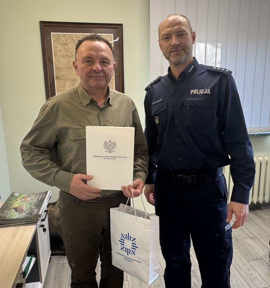 W trakcie spotkania Komendant podkreślił znaczenie przekazanego wsparcia finansowego, które Komenda Powiatowa Policji w Żaganiu otrzymała od Nadleśnictwa Krzystkowice w 2025 roku. Spotkanie odbyło się w świątecznej, życzliwej atmosferze i stało się okazją do wyrażenia oficjalnych podziękowań za dotychczasową pomoc.
