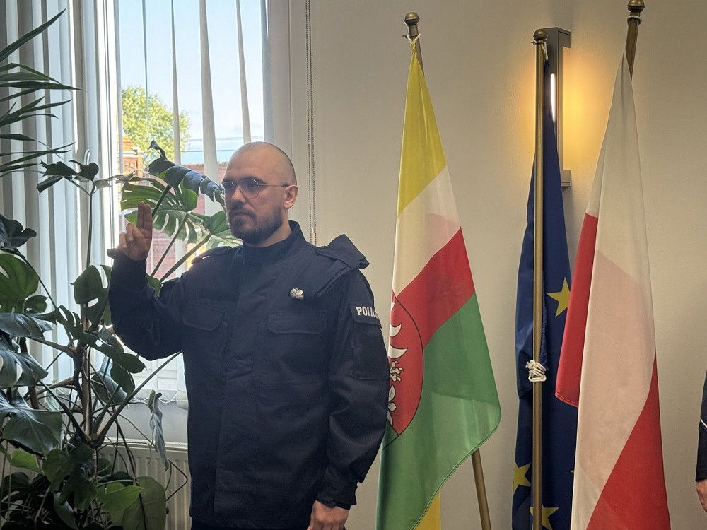 W Komendzie Powiatowej Policji w Żaganiu odbyła się uroczystość ślubowania nowego policjanta, który po ukończeniu kursu podstawowego zasili szeregi lokalnej jednostki i będzie służyć mieszkańcom powiatu.